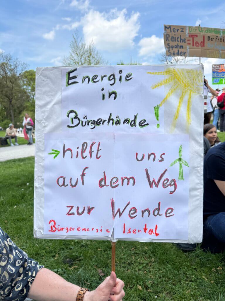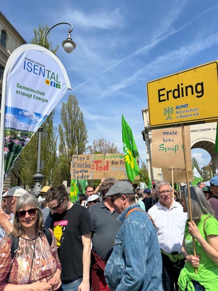 20 Vereinsmitglieder haben lautstark mit 12.000 anderen in München demonstriert. Wir wollten deutlich machen, dass die Energiewende nicht ausgebremst werden darf. Wir meinen, dass durch aktuelle politische Vorhaben der Ausbau von Wind- und Solarenergie gefährdet und fossile Energien bevorzugt werden. Für uns ist klar: Die Bundesregierung muss den Kurs ändern und den Ausbau erneuerbarer Energien beschleunigen.